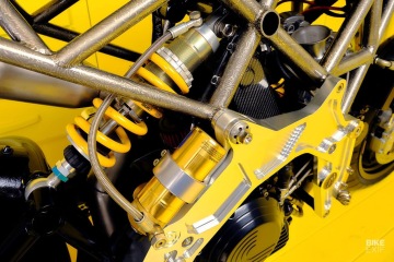 Jako základ celého podvozku použil originální rám Bimota Tesi Omega. Ten ovšem na motocyklu neuvidíme. Roland si totiž nakreslil vlastní originální design, takže původní rám rozebral na prvočinitele a pak znovu poskládal tak, jak si sám navrhl. A protože se nepovažuje za dobrého svářeče, oslovil svého přítele, aby mu pomohl celou konstrukci dát náležitě dohromady.