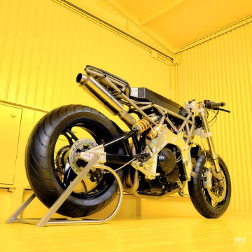 U PODOBNÝCH staveb je vždy zajímavé sledovat prvotní nápad. Kde se vzal? V tomto případě byl inspirací použitý výměník tepla z uhlíkových vláken z Hondy F1. Když si ho tak jednou prohlížel chlapík jménem Roland Groteclaes, napadlo ho, že by to byla designově povedená palivová nádrž k motocyklu. A tak to začalo. Nádrž tedy měl, zbývala už jen maličkost – postavit k ní odpovídající motocykl.