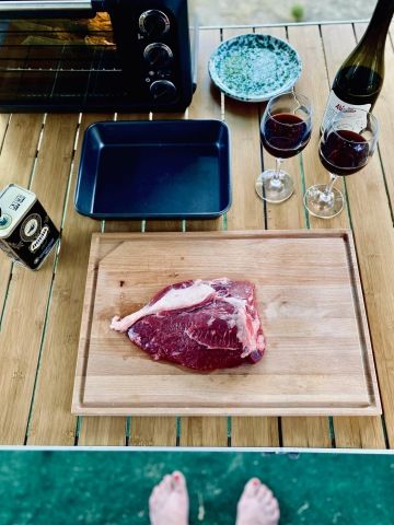 Maso nechte chvíli mimo lednici a poté potřete olivovým olejem a mírně osolte. Celý kus masa opečte na pánvi ze všech stran cca 4 – 5 minut. Poté ho přendejte do pekáčku a pečte v troubě asi 12 minut na 220 stupňů. Po vyndání ho nechte 15 minut odpočinout a můžete krájet!