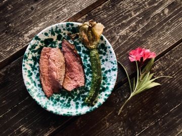 VROOMAGAZINE vám přináší recept na toskánský sen aneb Hovězí ramínko s pečenou cuketkou a plněným květem od cestovatelky Bohdany Kobrové, která na svých cestách po Toskánsku navštívila krále řezníků Daria Cecchini.