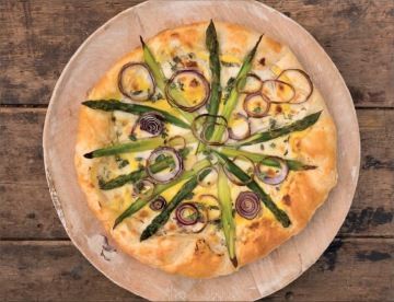 První chřest je spolehlivým znamením, že jaro je tady. Tahle galette ho doplňuje brynzou, smetanou a tenkými plátky červené cibule. Kombinace jednoduchá, ale s jasnou chutí a elegantní prezentací. Funguje jako lehký oběd i tiché pohoštění pro pár přátel.