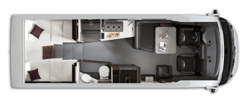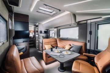Řidičova kabina je součástí obytného prostoru (integrovaná s prostorem) a přední sedadla jsou otočná. Rozložení a vybavení se liší v závislosti na velikosti, typu, ceně a požadavcích zákazníka. Můžeme mít dvě koupelny, pračku, sušičku i garáž na malé auto. Nejluxusnější verze mají na bocích elektricky poháněné výsuvné moduly, které po zaparkování rozšíří obytný prostor.