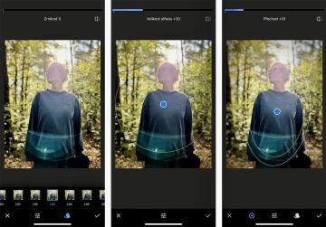 Vpravo: Rovněž fotka proti slunci. Tentokrát ale slunce svítí nad hlavou přímo do objektivu. Vytváří tzv. lens flare na mikině. Fotku je nutné upravit a zesvětlit tvář, která je nyní přelitá protisvětlem.