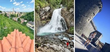 Uprostřed: Tenhle vodopád byl ohromný. Na fotkách na Googlu tak ale nevypadal. To proto, že jsem neměl srovnání. Proto jsem na fotografii nechal zapózovat syna aby rozměry vodopádu vynikly. Pravý dolní roh jsem volil opět z důvodu, že si ho oko nechá při pozorování fotky na závěr.