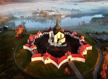 ◉ Poutní kostel sv. Jana Nepomuckého na Zelené hoře je jedním z menších, avšak mimořádně originálních projektů proslulého Jana Blažeje Santiniho. Nevšední a detailně promyšlená stavba oslavuje symboliku čísla pět a dostává tak mystický nádech. Má půdorys pěticípé hvězdy. Pětiúhlé jsou i zpovědní kaple a do lodi kostela lze vstoupit pěti oválnými předsíněmi. Hlavní oltář obklopuje pět andělů, z nichž tři drží zeměkouli s pěti hvězdami. |