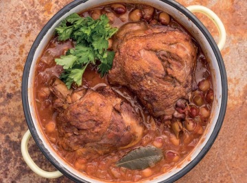 Krůtí stehna s fazolemi a červeným vínem