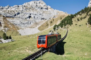 Z Alpnachstadu na vrchol Pilatusu (2 132 m n. m.) vás vyveze nejstrmější zubačka na světě. Sklon až 48 %, dechberoucí výhledy a nostalgie horské železnice z 19. století.