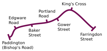 Historicky 1. linka se dnes jmenuje Metropolitan Line a původně spojovala Farringdon a Paddington. Její název se odkazuje na původní název podzemní dráhy – Metropolitan Railway, která tomuto druhu přepravy dala i název – Metro.