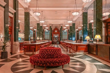 Když vstoupíte do jeho majestátního foyer, obklopí vás hluboké smaragdové tóny sametu, odlesky mosazi a dokonalá symetrie prostorů, kde každý detail vypráví příběh elegance. Křišťálové lustry Lalique, mramorové podlahy s geometrickými vzory a nábytek inspirovaný návrhy Émile-Jacquese Ruhlmanna – zde není nic ponecháno náhodě.