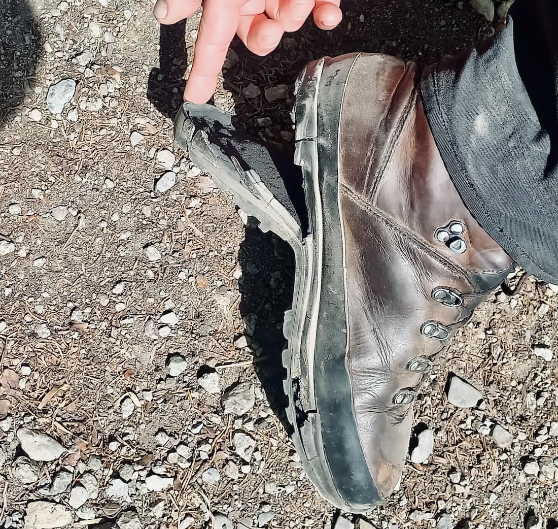 I ty nejkvalitnější trekové boty mohou po letech selhat. Důvodem je hydrolýza polyuretanu – chemická reakce, která oslabuje materiál spojující podrážku s botou. K tomu může dojít už po pěti letech, v mém případě se to stalo přibližně po osmi.
