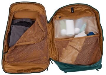 Ve chvíli, kdy batoh Thule otevřete v „kufrovém režimu“, balení a přebalování se stává hračkou. Praktické mi přijdou síťované kapsy, resp. kapsy, do kterých je hned vidět. Oddělení prostoru pro pracovní věci (polstrovaná kapsa na notebook, kapsy na psací potřeby) vám umožní udržet si vnitřní prostor dobře zorganizovaný.