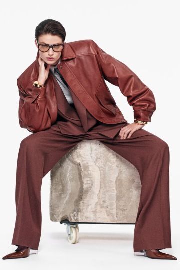 ❖ Přísně střižené sako s oversized rameny, které dodává postavě dominanci. |
