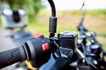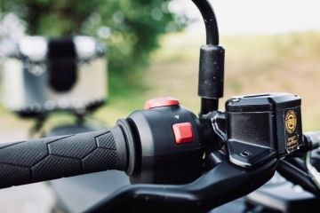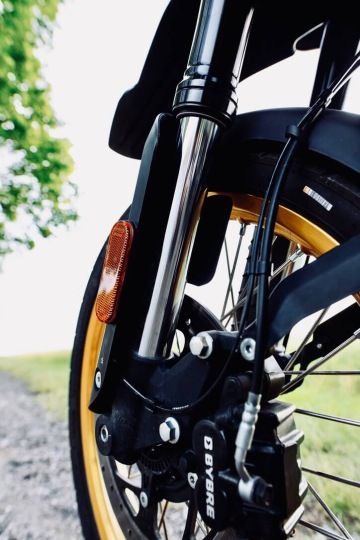 Motor nemá při zavření plynu velký brzdný účinek. Na jednu stranu je to dobře, při kochací jízdě to dodává na pohodlí. Pokud chcete tlačit na pilu, musíte spoléhat víc na brzdy. Mně ta přední brzda přišla ze začátku vlažná, při použití dvou či tří prstů s větším stiskem ale brzdí obstojně. Navíc zadní brzda, která bývá na mnoha strojích spíše do počtu, tu má robustní kotouč a je opravdu nápomocná. Třmeny nesou název ByBre, jelikož výrobci poskytla licenci věhlasná značka Brembo.