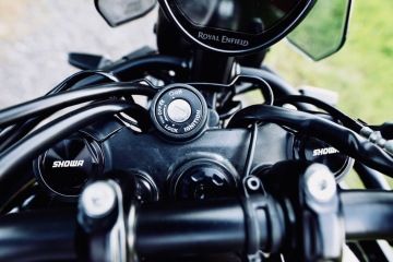Hned mě zaujme šroubovaný podsedlový rám, což je v této cenové kategorii motorek nevídaný bonus. A to není všechno. Světla jsou kompletně LEDková a zadní světlo je dokonce integrované v blinkrech – hezký. Royal Enfield nešetřil ani na odpružení, kde vsadil na renomovanou japonskou značku Showa. Kromě přední obrácené vidlice o průměru 43 mm ocení uživatel také snadný přístup k nastavení předpětí pružiny centrálního tlumiče.