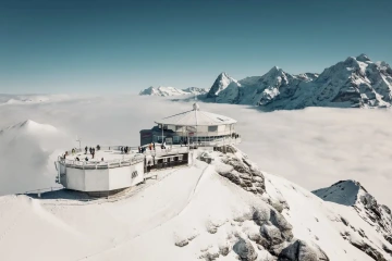 | Na vrcholu otočná restaurace Piz Gloria z bondovky On Her Majesty’s Secret Service. |