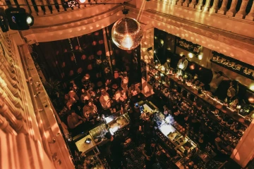 | Design & atmosféra: Art-deco, černo-zlatá paleta, intimní přízemí a bujarý suterén. |