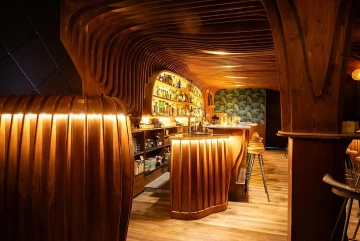 | Design & atmosféra: Futuristický interiér, otevřený workstation bez bariéry mezi hostem a barmanem. |