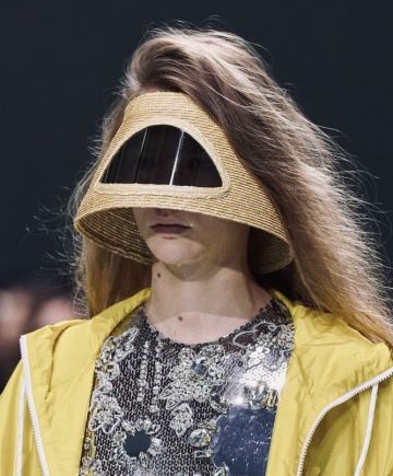 Jestli-že patříte mezi ty, kteří neustále hledají brýle, potěší vás novinka od Prady. Hybrid slaměného kšiltu a brýlí má hned několik výhod. A sice: je tak výrazný, že ho prostě nemůžete ztratit. Zakrývá téměř celý obličej, takže potřebujete-li být inkognito, hurá! A vrásky ze sluníčka? Na ty můžete rovnou zapomenout!